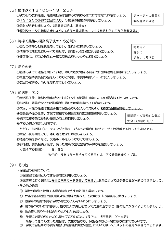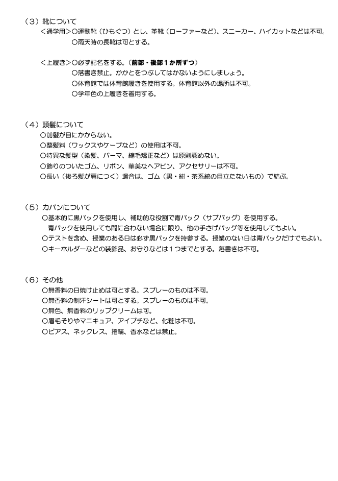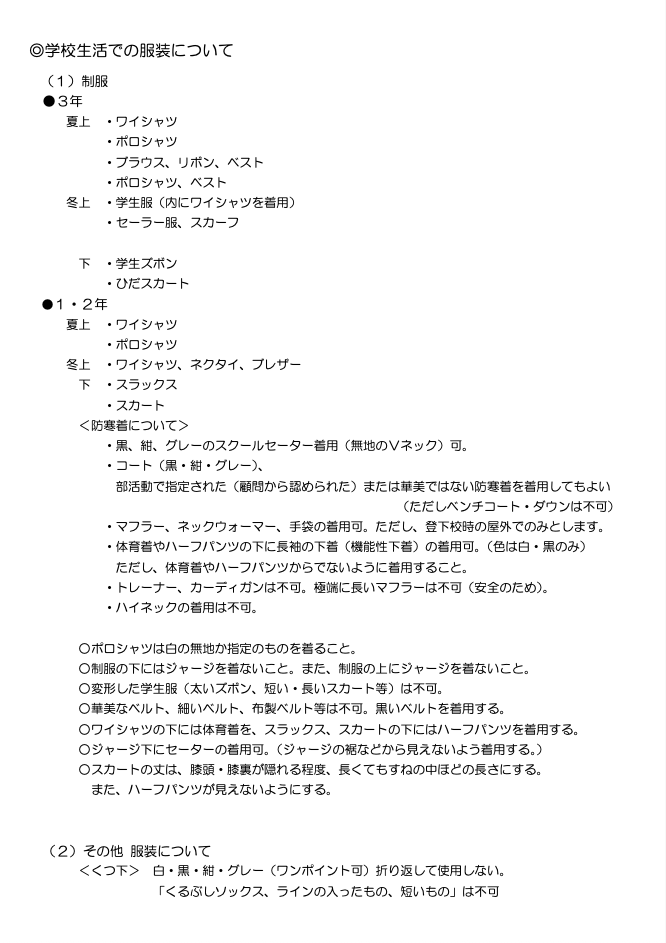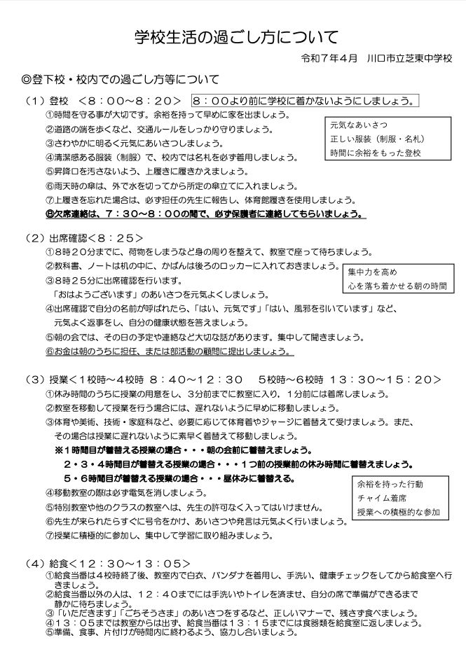 川口市立芝東中学校学校校則